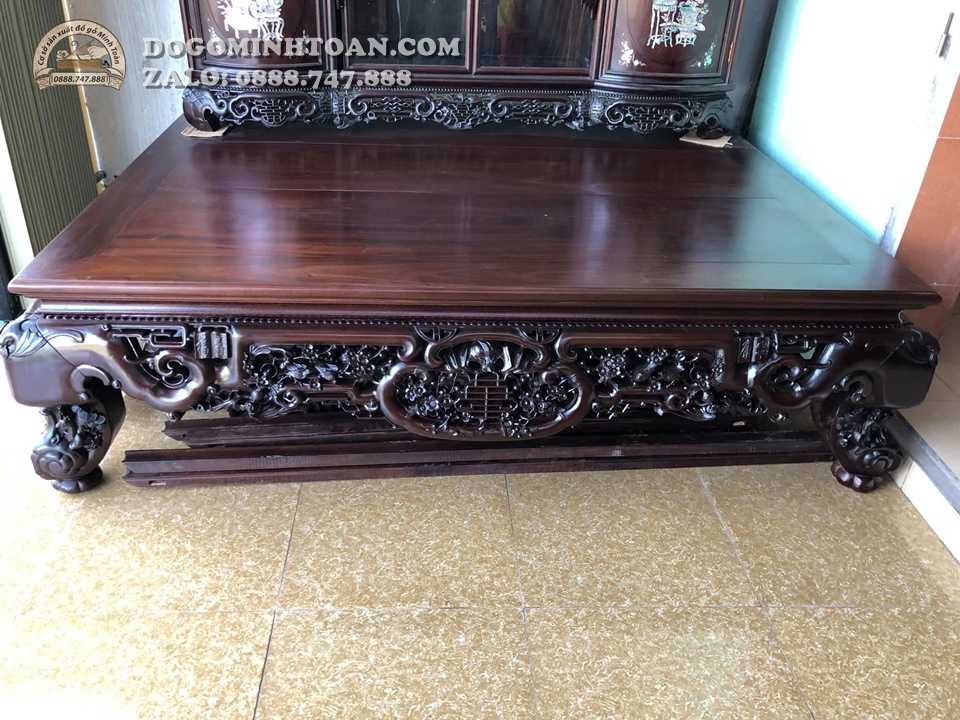 Sập ngũ phúc đục chân hươu là sản phẩm tinh hoa tại cơ sở đồ gỗ Minh Toàn. Sập gỗ được đục tay mặt trơn với chất gỗ gụ quý tự nhiên lên màu rất đẹp và sang.