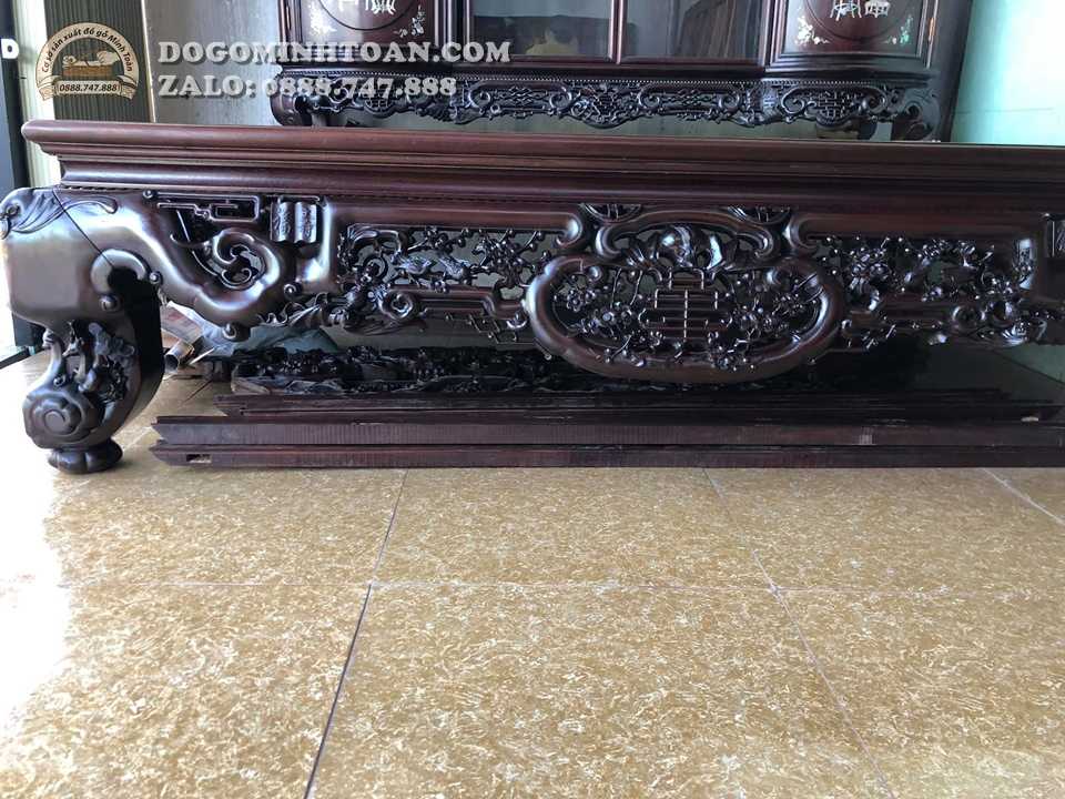 Quây sâp gụ ngũ phúc chân hươu được chạm đục tích “Ngũ Phúc” rất sáng và nuột