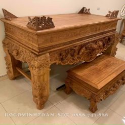 - Tên sản phẩm: Sập Thờ + Bàn Cơm Gỗ Gõ Đỏ Đục Tứ Linh Cỡ Đại 2m17
