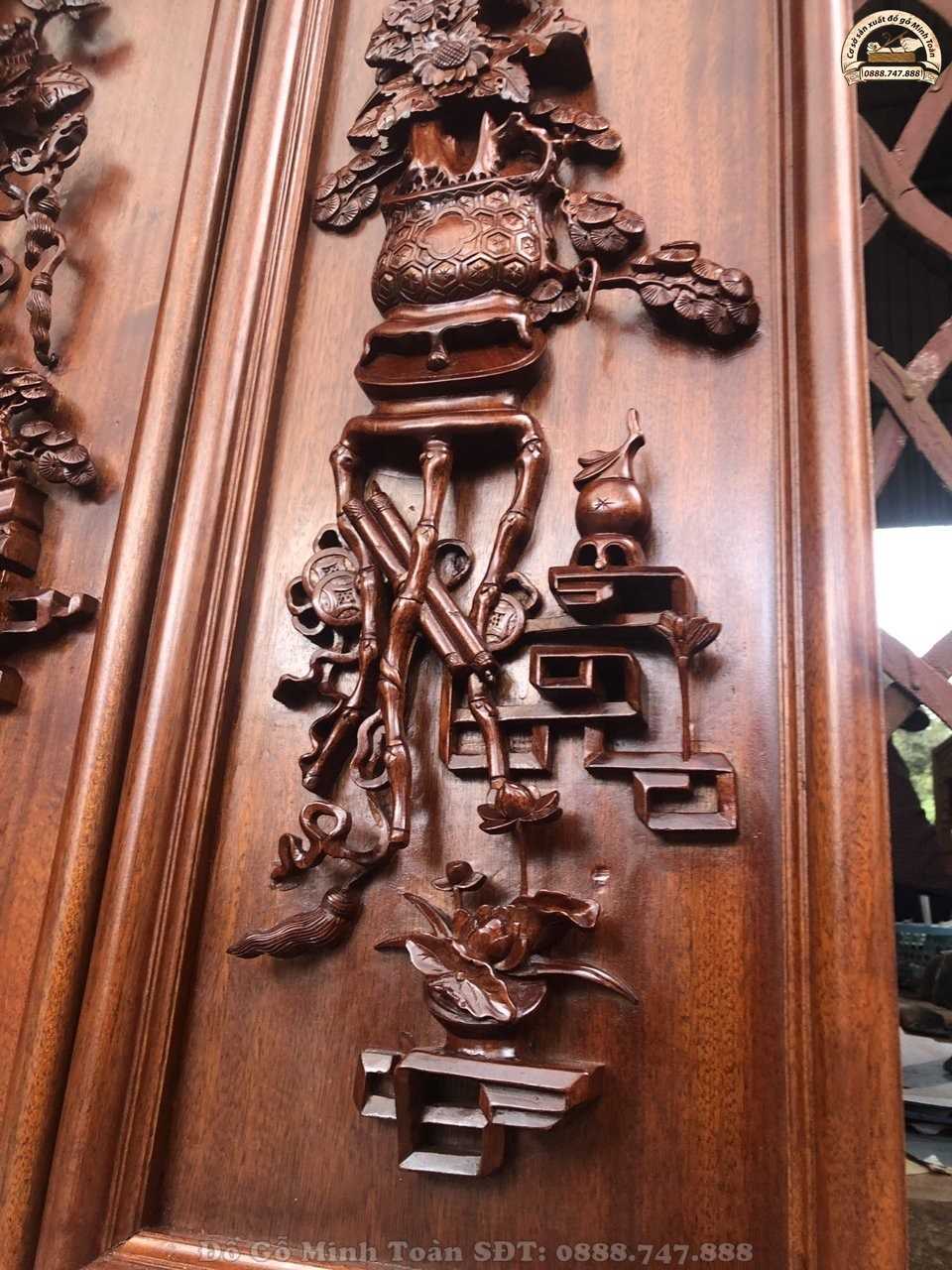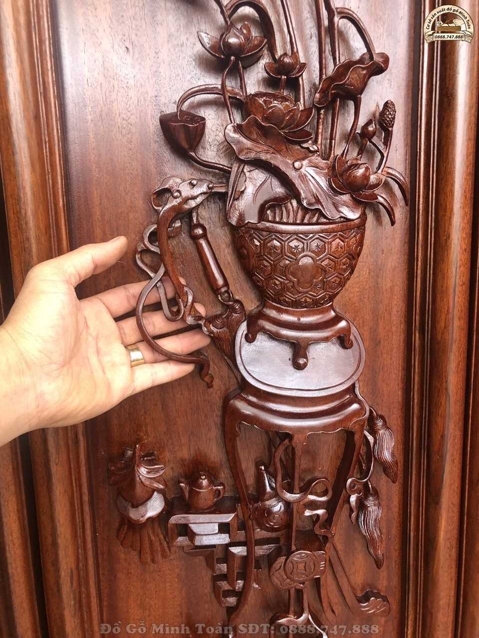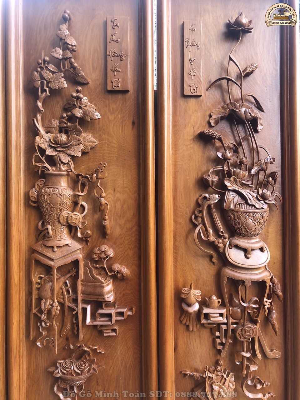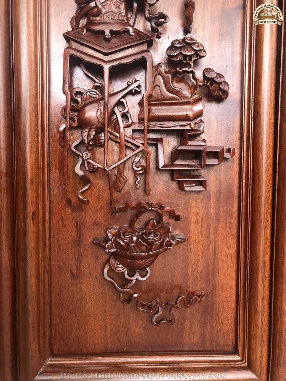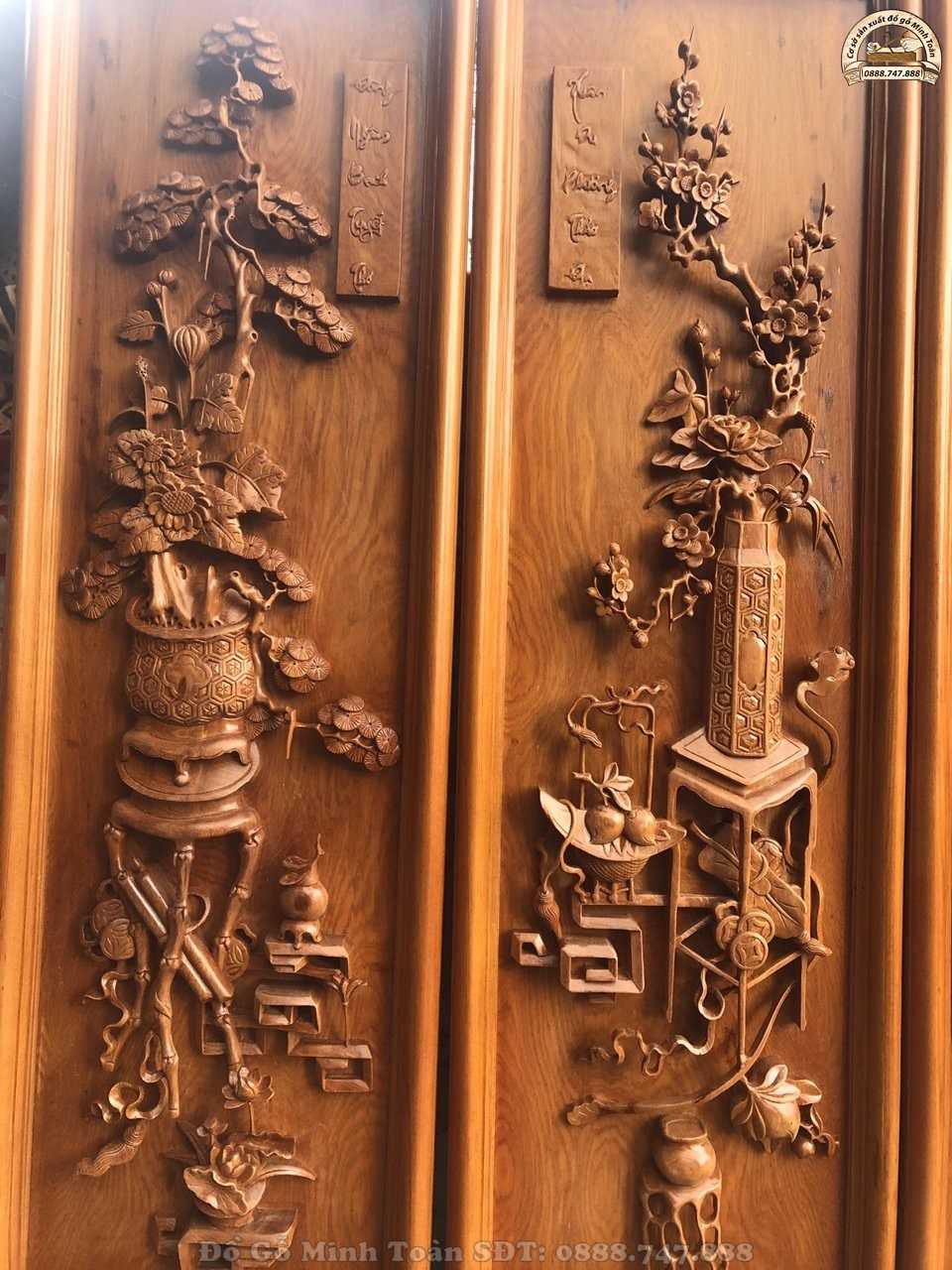 TG52 Tranh Gỗ Gụ Đục Tứ Bình Hàng Kênh Bong ( Anh Cường, Hải Dương )