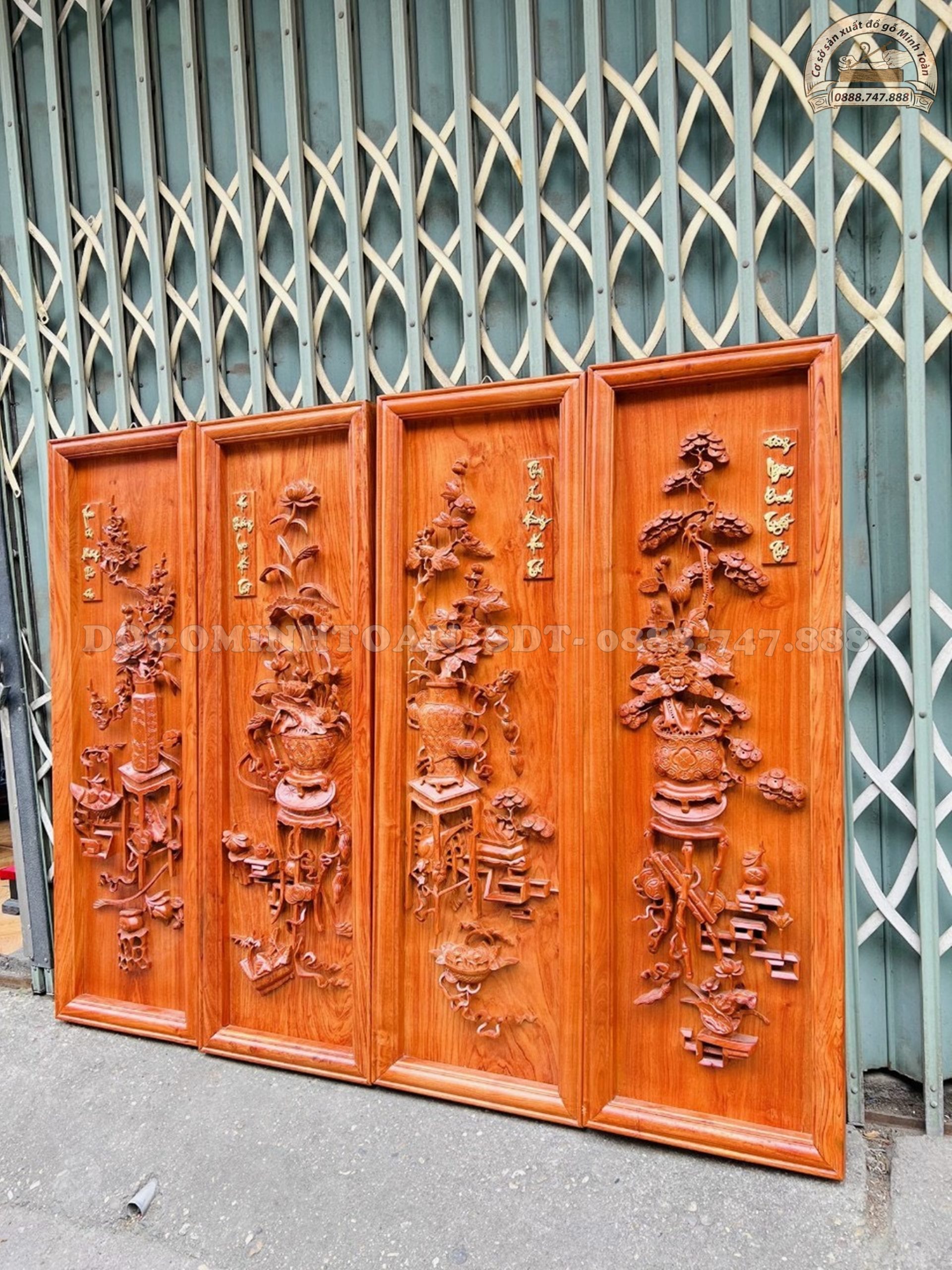 - Tên sản phẩm:Tranh Tứ Bình Gỗ Hương Đá 35 x 115 dày 5p