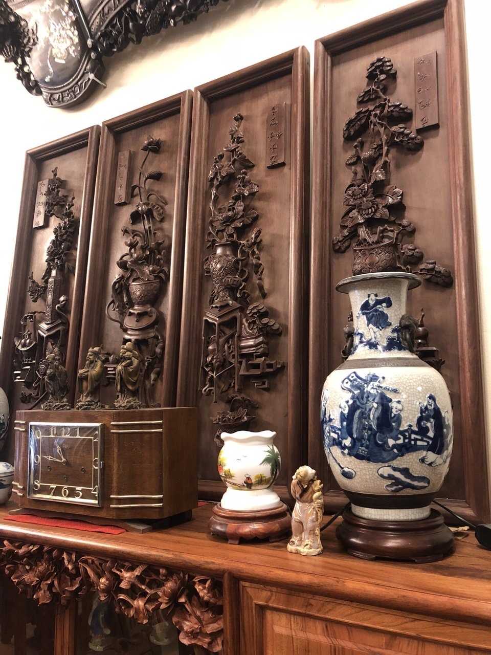 Phòng khách gia đình bạn sẽ trở nên sang trọng hơn khi có sự hiện diện của tranh tứ bình hàng cũ. Bức tranh chính là biểu tượng cho 4 mùa: Xuân – Hạ – Thu – Đông.