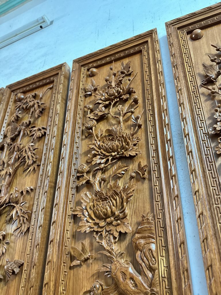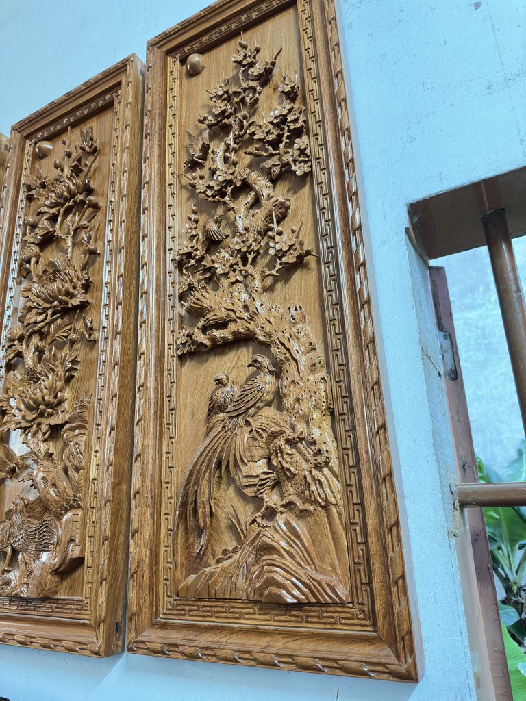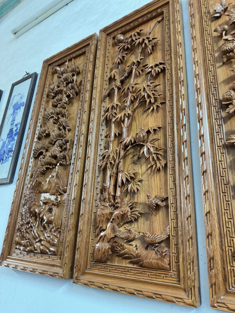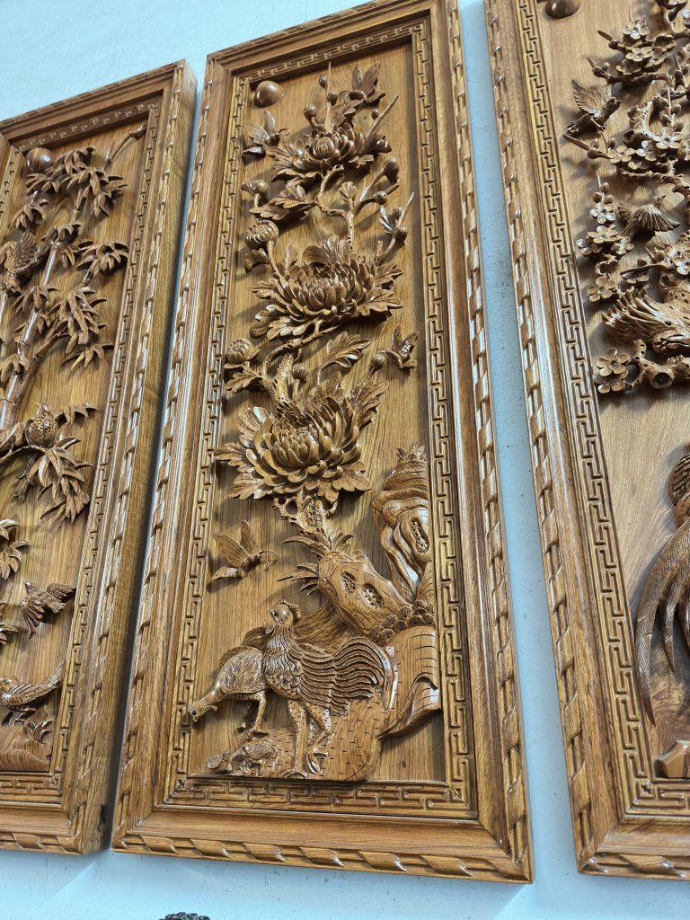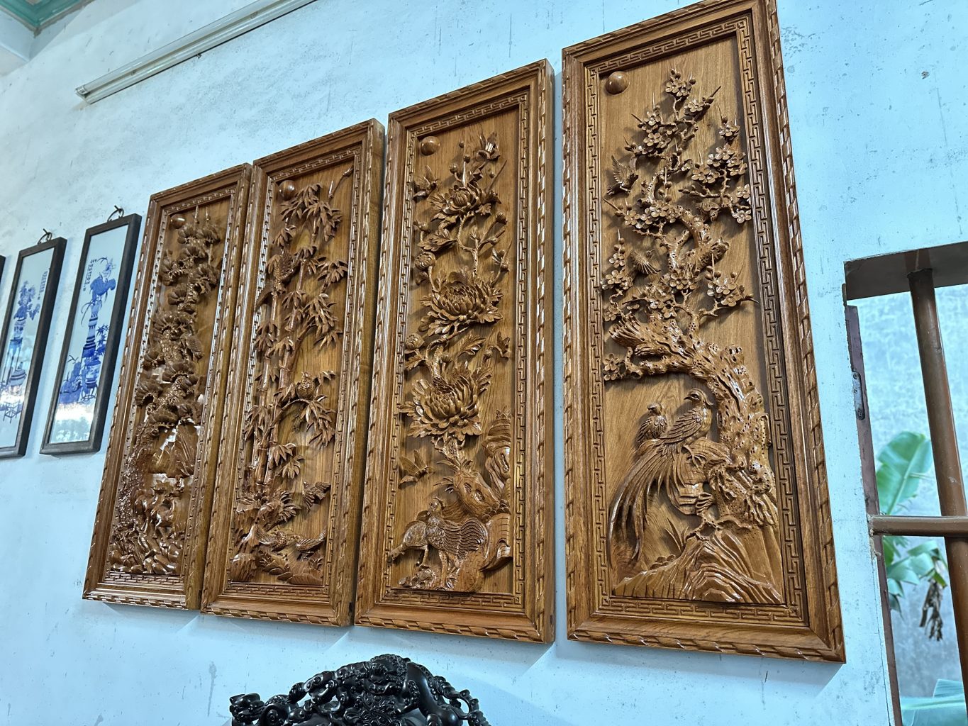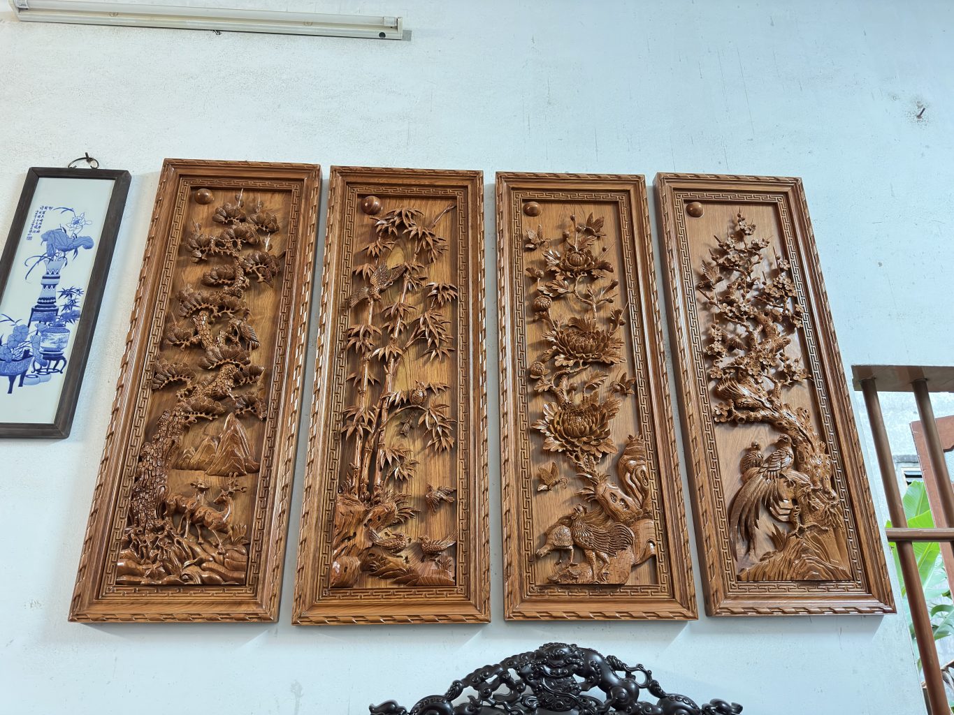 Tranh tứ quý gỗ hương đá hàng cỡ to 45 x 125 hàng dày 6p
