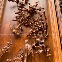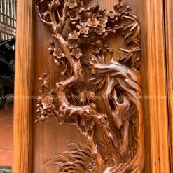Được các nghệ nhân làm rất kĩ thuật làm từ chất liệu gụ Gia Mật 100%. Mẫu tranh đẹp đẹp có những đường nét tinh xảo, được kết hợp hài hòa tinh tế. Sản phẩm được rất nhiều người lựa chọn sủ dụng trang trí trong các không gian phòng khác nhau rất đẹp.