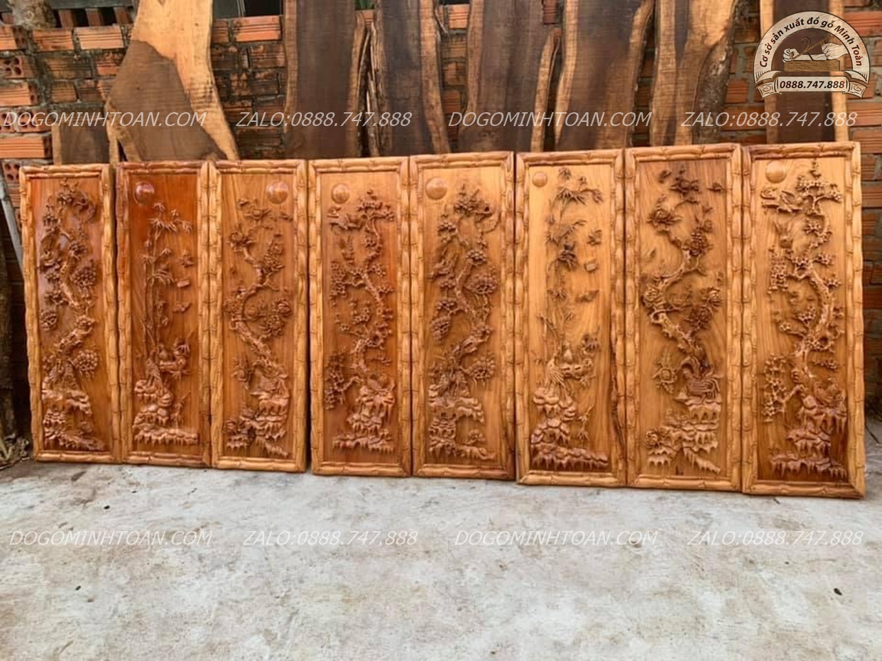 Bộ tranh gỗ tứ quý được biết đến là một loại tranh trục, bao gồm tất cả 4 bức tranh được sử dụng với mục đích chính đó là trang trí trong gia đình như: phòng khách, phòng làm việc. Bộ tranh tứ bình hay được gọi là đại diện của 4 mùa xuân hạ thu đông trong năm và được xem là vật phẩm phong thuỷ mang đến nhiều may mắn cho gia chủ. Bức tranh tứ quý này được đồ gỗ Minh Toàn đục chạm kênh bong nên hình ảnh cây tùng, hoa sen, hoa cúc, hoa mai giống như hình ảnh 3D nổi bật trên nền gỗ.