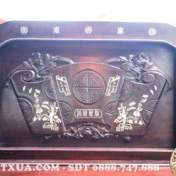 Hơn nữa, sản phẩm được cẩn ốc với chữ phúc chạy quanh tựa ghế và các phần của cuốn thư làm cho bộ trường có điểm nhấn nhất định, thu hút người nhìn.
