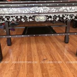 Khi nhìn vào, bạn chắc chắn sẽ bị ấn tượng bởi sự sang trọng của những họa tiết, hoa văn trên vật dụng kết hợp với nhau vô cùng hài hòa. Tác phẩm gồm tổng 3 món được làm từ chất liệu gỗ gụ.