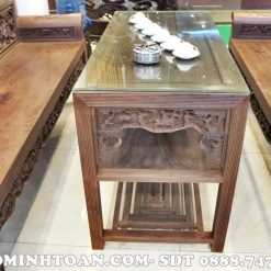 Bộ trường kỷ đục tích mẫu này sở hữu 3 món đó là 2 trường + 1 bàn nhìn rất cân đối đồng đều nhau.