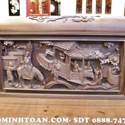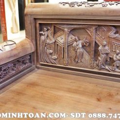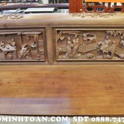 Bộ trường kỷ đục tích vinh quy bái tổ siêu đẹp được đục chạm tứ quý và cảnh vịt trong hồ sen rất sinh động, gần gũi, quen thuộc làng quê Việt. Sản phẩm này thích hợp với mọi không gian kiến trúc từ cổ điển cho đến hiện đại.