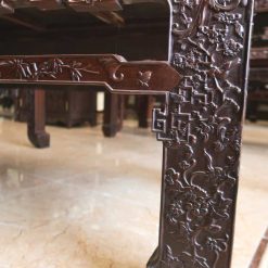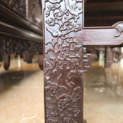 Bộ ghế được đục chạm khắc khá kì công và mất nhiều công sức, hình thức form dáng chắc chắn, ghế ngồi rộng, thoải mái.