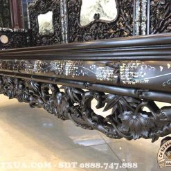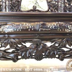 Mẫu trường kỷ đục trúc khảm ốc này được các nghệ nhân Đồ gỗ Minh Toàn chăm chút đến từng chi tiết. Do đó sản phẩm bắt đầu nhìn sẽ toát lên vẻ đẹp quý tộc rất cuốn hút, sự mềm mại, thanh thoát với những nét chạm khắc vô cùng tròn chĩnh, có hồn.
