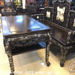 Hình ảnh phần bàn của bộ trường kỷ đục trúc khảm ốc