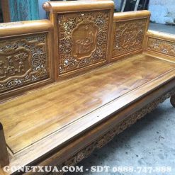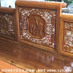 – Ghế trường kỷ tam sơn vai lật gỗ gụ đục tứ bình