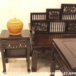 Thiết kế chân ghế, chân bàn rất vững trãi, kiên cố với những thanh gỗ dày dặn, chắc khỏe. Chính điều đó đã giúp cho bộ trường kỷ song tiện trở nên chắc chắn, bền vững hơn. Mang đến sự bền vững, vẻ đẹp trường tồn theo thời gian, năm tháng.