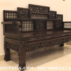 Hoa văn đơn giản: Điểm đặc biệt của bộ ghế trường kỷ song tiện ngũ sơn Huế đó chính là hoa văn cách điệu, không rườm rà, cầu kỳ như bộ trường kỷ lá dắt, trường bách vật…
