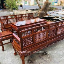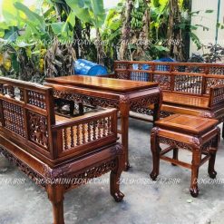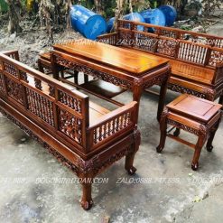 - Tên sản phẩm:Trường kỷ con tiện chân móng gỗ gụ mật hàng đặt mộng thủng 5 món