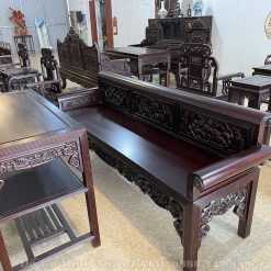 - Tên sản phẩm:Trường Kỷ Sen Cò Đục Nền Gỗ Gụ Cỡ trung gồm 3 món