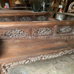 Nằm trong bộ sưu tập trường kỷ xưa, bộ trường kỷ đục sen cò gỗ gụ ta Quảng Bình được nghệ nhân đưa hình ảnh rất gần gũi của làng quê Việt Nam như cảnh sen cò để lột tả được cuộc sống thanh bình, nhẹ nhàng với sự hồn hậu vốn có. Mỗi chi tiết, mỗi nét đục vẽ đều được nghệ nhân gọt giũa nuột nà khiến cho hình ảnh sen cò trên bộ trường kỷ càng trở nên sinh động. Chính vì thế, giá trị của bộ trường kỷ đục sen cò gỗ gụ ta ngoài đắt giá về chất liệu gỗ thì còn có giá trị cao trong nghệ thuật thủ công lối xưa. Hãy cùng đồ gỗ Minh Toàn xem những thông tin chi tiết về bộ trường kỷ này nhé.