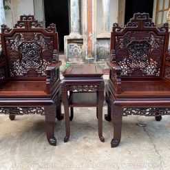 Bộ Trường kỷ tam sơn đục ngũ lân vờn cầu 6 món gỗ gụ sẽ là chốn không gian an yên để bạn có thể thưởng thức và thư giãn vào ngày cuối tuần cùng gia đình, hay những người bạn thân đàm đạo và thơ phú về những món cổ vật, hay đồ gỗ lối xưa. Vậy chẳng có lý do gì mà không đến ngay đồ gỗ Minh Toàn để rước em này về trưng diện phòng khách gia đình phải không nào?