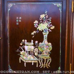 Khảm cảnh đông bích bằng chất ốc đỏ singapo với cánh tủ ở 2 bên