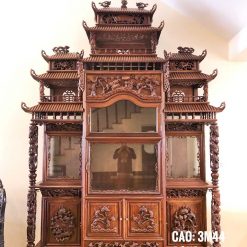 - Tên Sản Phẩm: Tủ chùa 9 mái trầu rồng gỗ gụ
