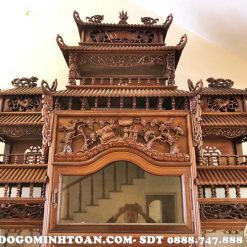 Tủ chùa 9 mái rồng chầu là một trong những món đồ thiết kế cực kỳ tinh xảo, kỹ nghệ tại đồ gỗ Minh Toàn. Bộ tủ chùa gồm 9 mái 3 buồng với form dáng độc lạ, tinh xảo đã truyền cảm hứng yêu thích của những nghệ nhân đam mê đồ xưa.