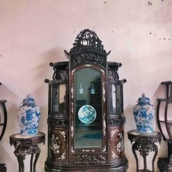 - Tên Sản Phẩm: Tủ chùa khảm ốc tích tam quốc gỗ gụ