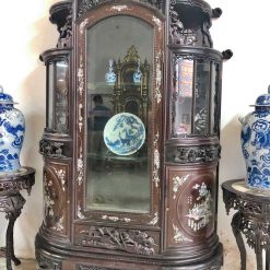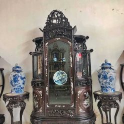 Mẫu Tủ Bày Đồ Đẹp Khác: Tủ góc thiếc vàng gỗ gụ