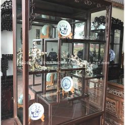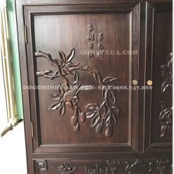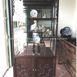 Tủ bày đồ phòng khách gỗ gụ hàng đục cánh
