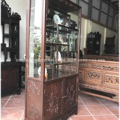 Mẫu Tủ Bày Đồ Đẹp Khác: Tủ gỗ trưng bày đồ cổ đục trúc nho gỗ gụ