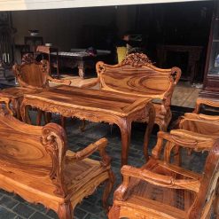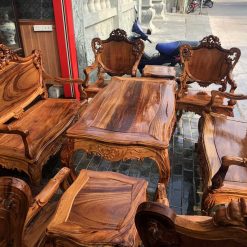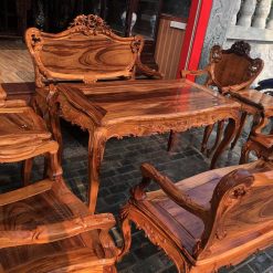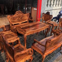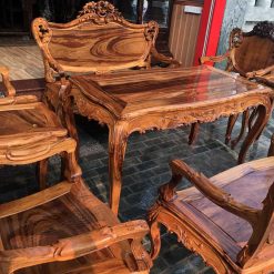 HG031 Bàn Ghế Louis Hoàng Gia Gỗ Gụ Quảng Bình 9 Món Vân VIP ( Anh Hùng, Yến Bái )